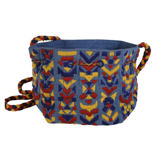 Lovestitch Boho Denim Embroidered Bucket Bag w/ Shells - Blue Denim