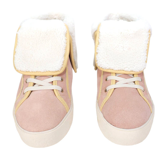 Coach Womens Suede Fold Over Sherpa High Tops- Vanilla / Pale Pink