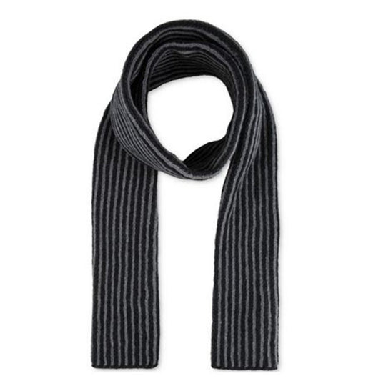 Kenneth Cole Reaction Striped Knit Scarf and Beanie Set - Black/Gray