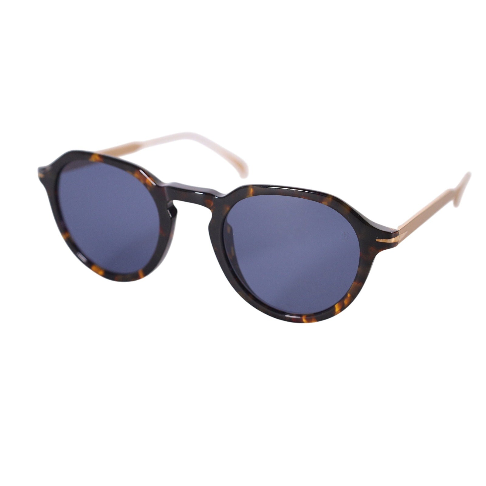 David Beckham Lightweight Round Mens Sunglasses- 21K Havana Gold / Blue