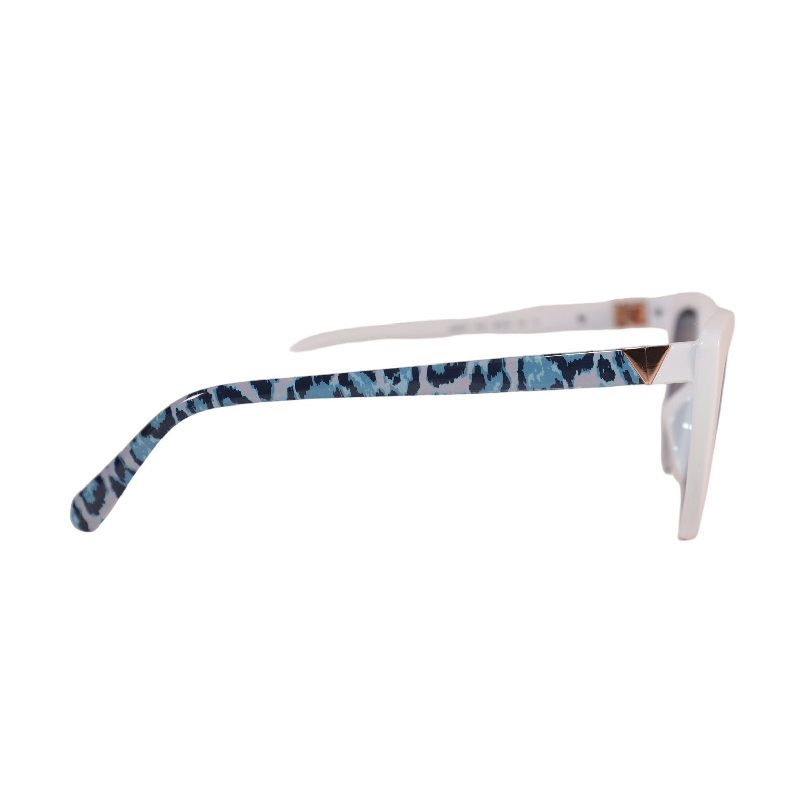 Guess Cat Eye Women’s Sunglasses – White Frame with Blue Animal Print Arms