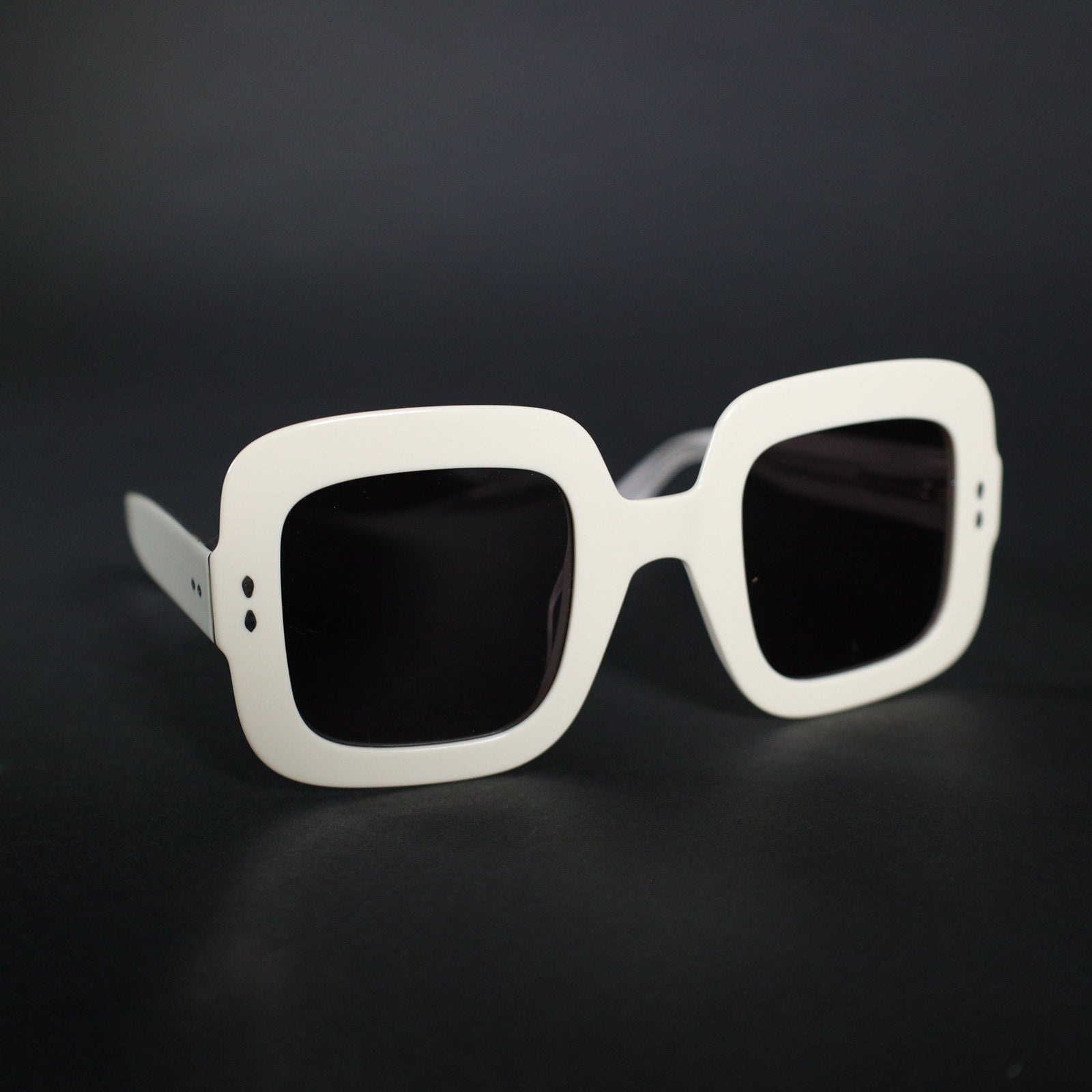 The shape is oversized and structured, with solid grey lenses that give you the cool, mysterious vibe while offering 100% UV protection. The ivory acetate frame pops beautifully against summer skin, and the subtle silver metal accents at the temples add just the right hint of edge.