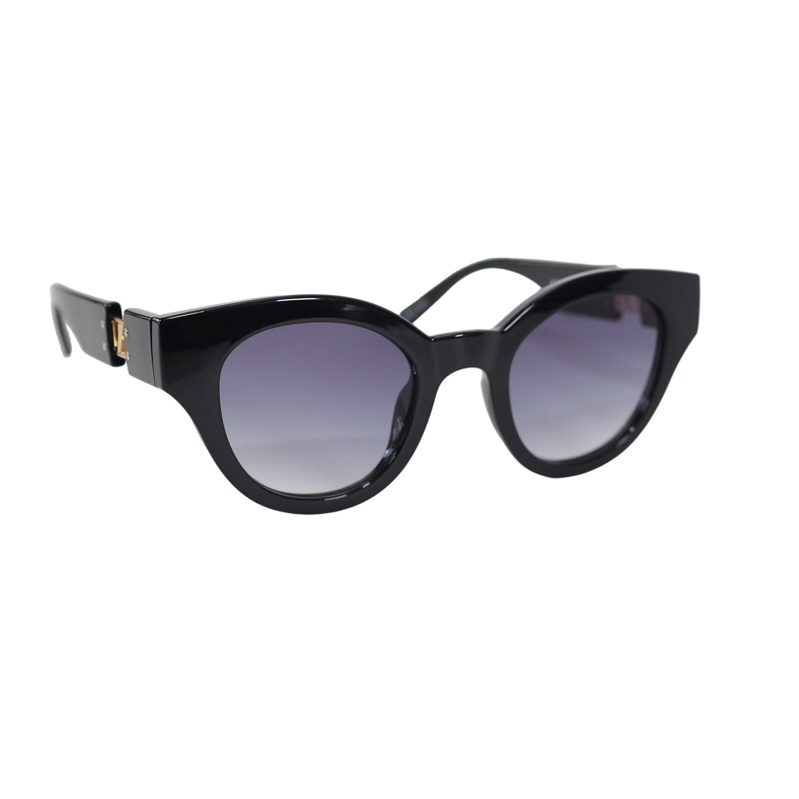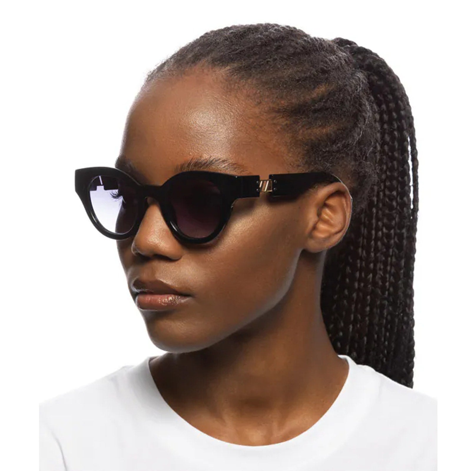 Le Specs Deja Nu Round Womens Sunglasses - Shiny Black / Grey