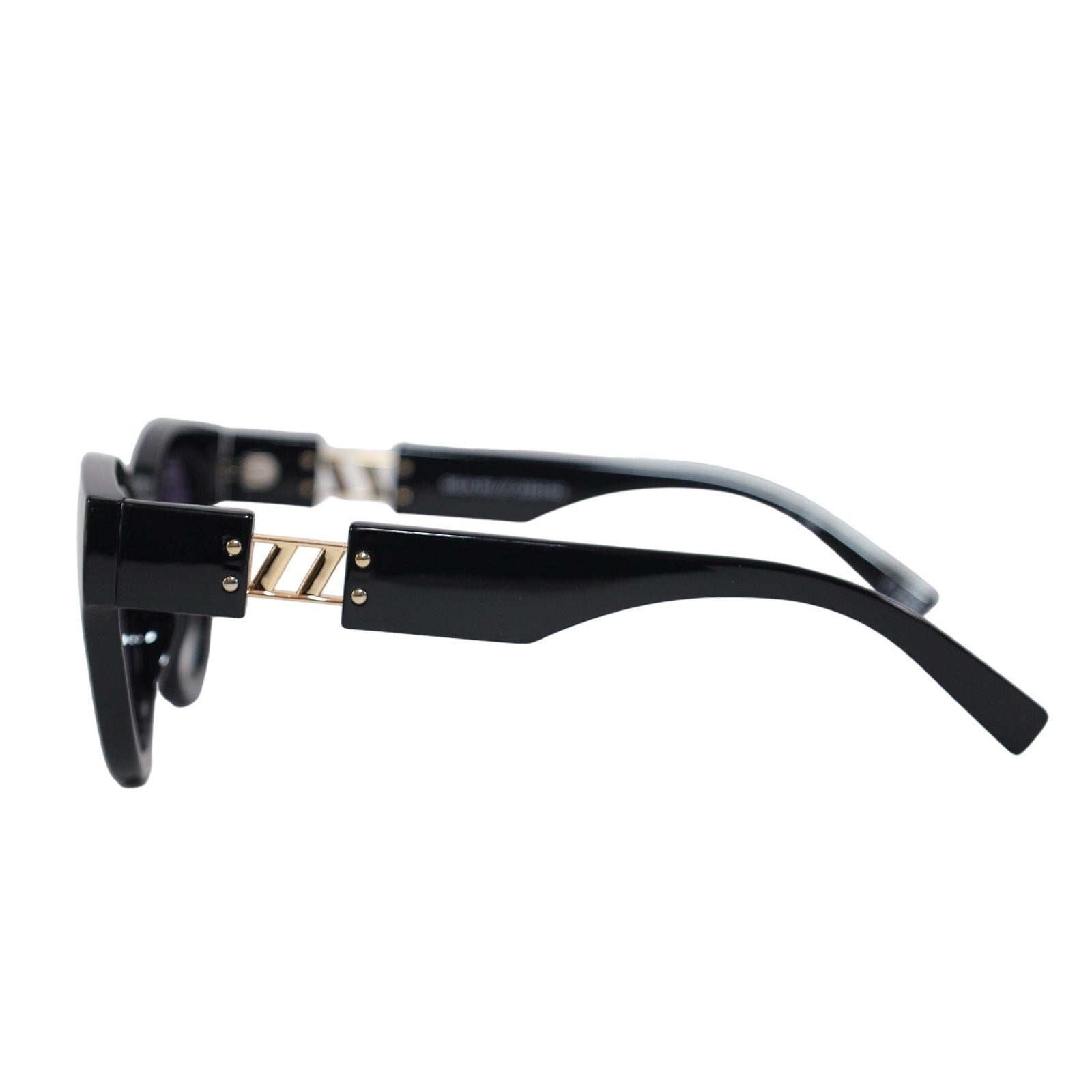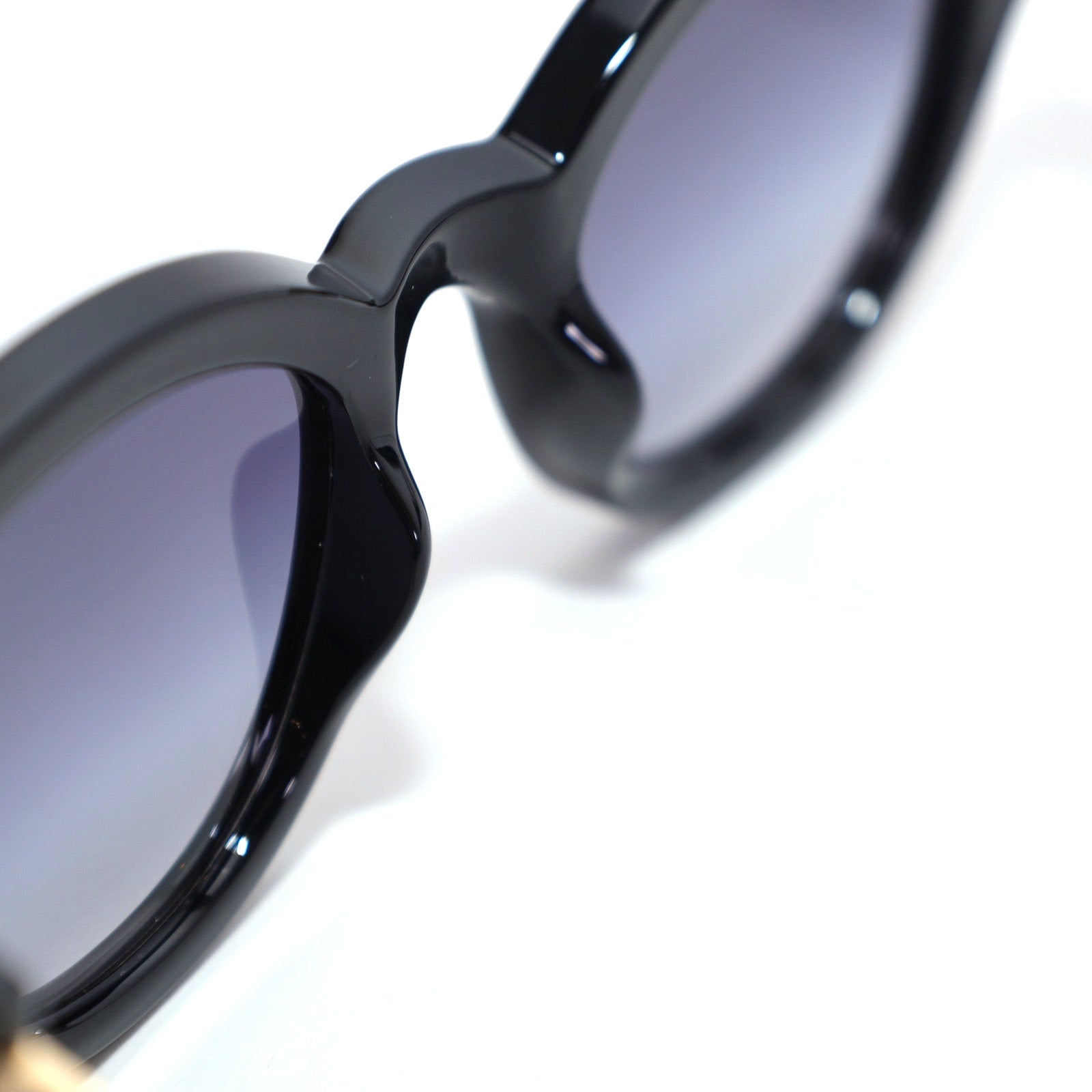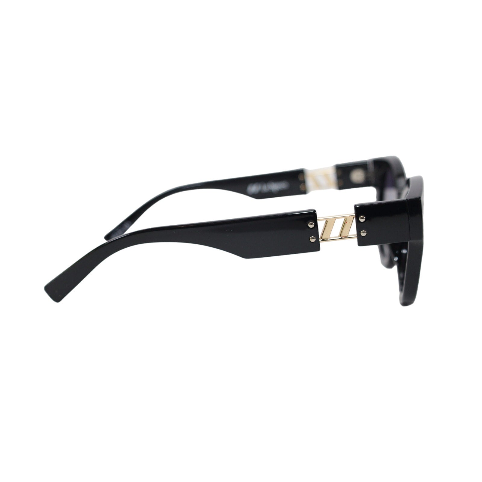 *Wide arms with unique metal accent suspended gold hardware at both temples.