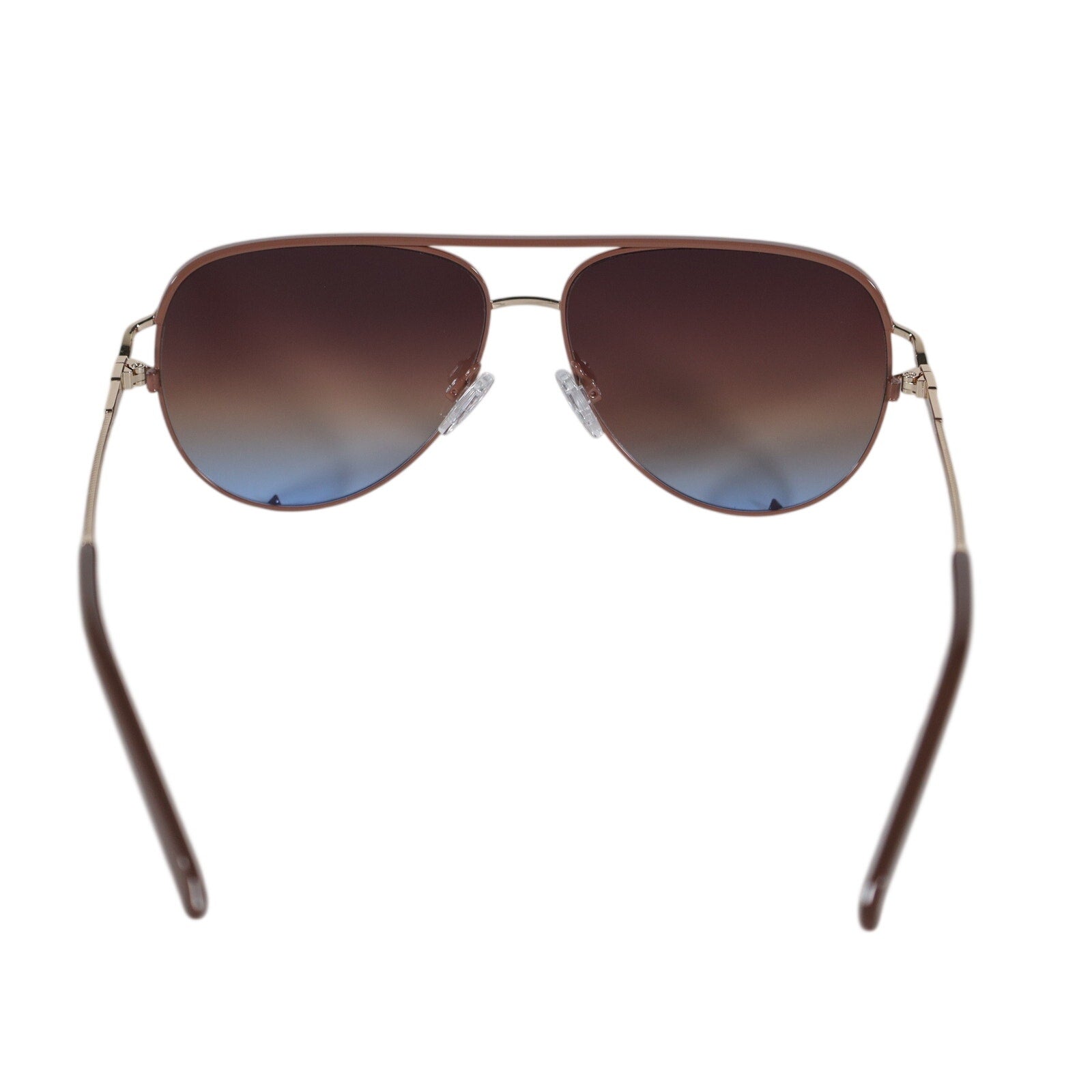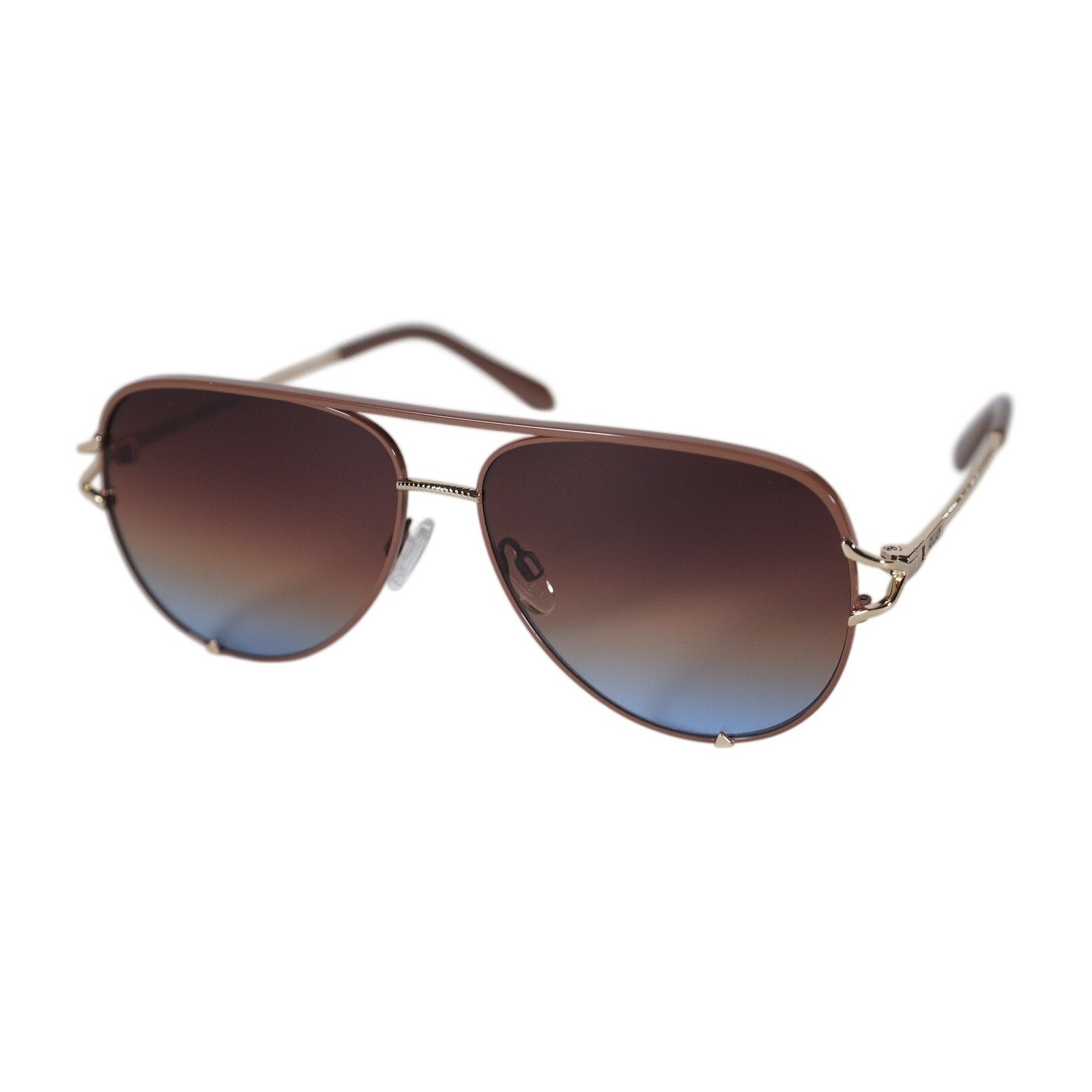 Meet your new go-to sunnies: Quay Australia High Key Twist Aviator Sunglasses in Doe with Brown-Blue Ombre lenses. These are not your average aviators. This iconic oversized silhouette is serving main-character energy with sleek metal frames and subtle detailing on gold metal arms for just the right amount of extra.