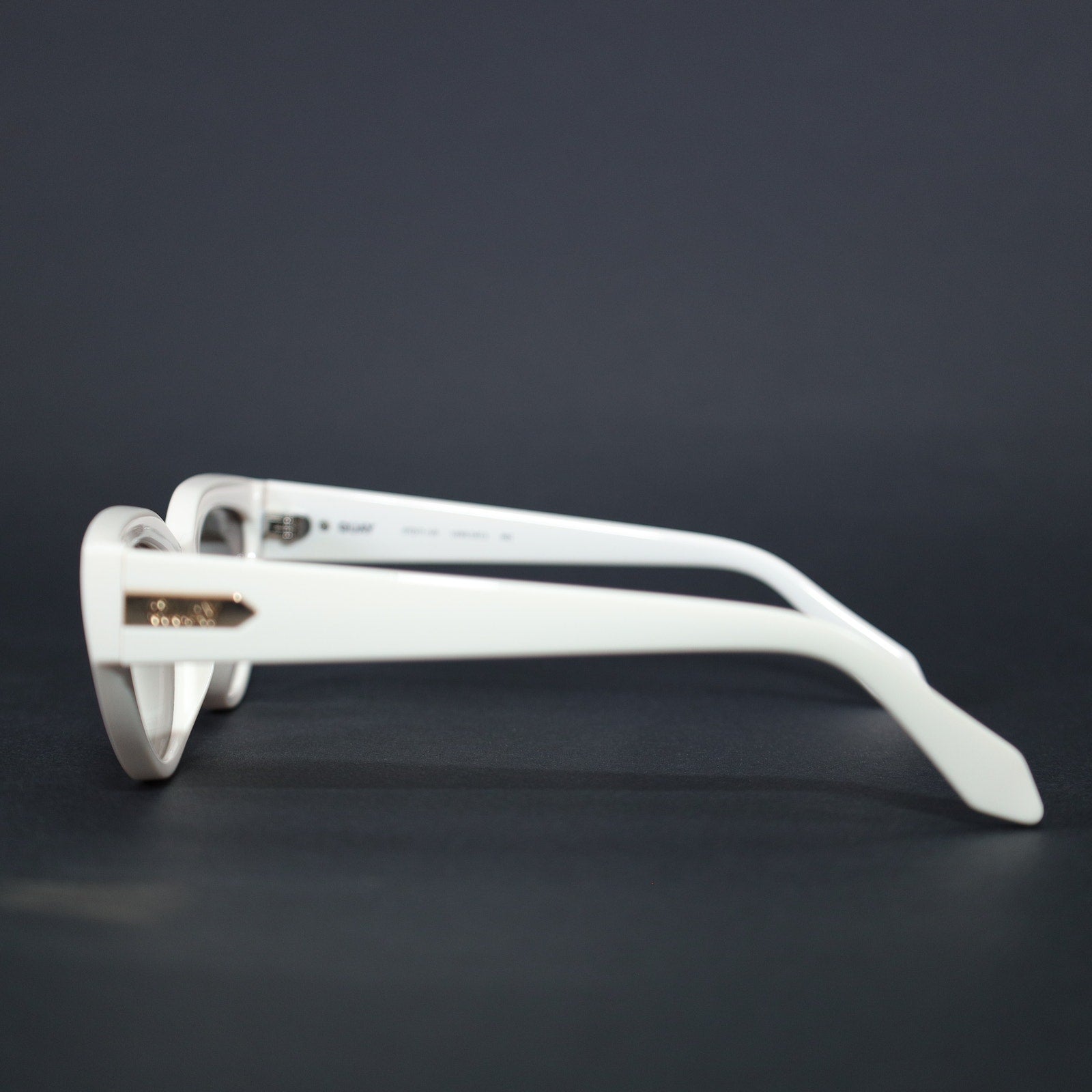 *Frame: Narrow cat eye shaped thick full frame in Bone White