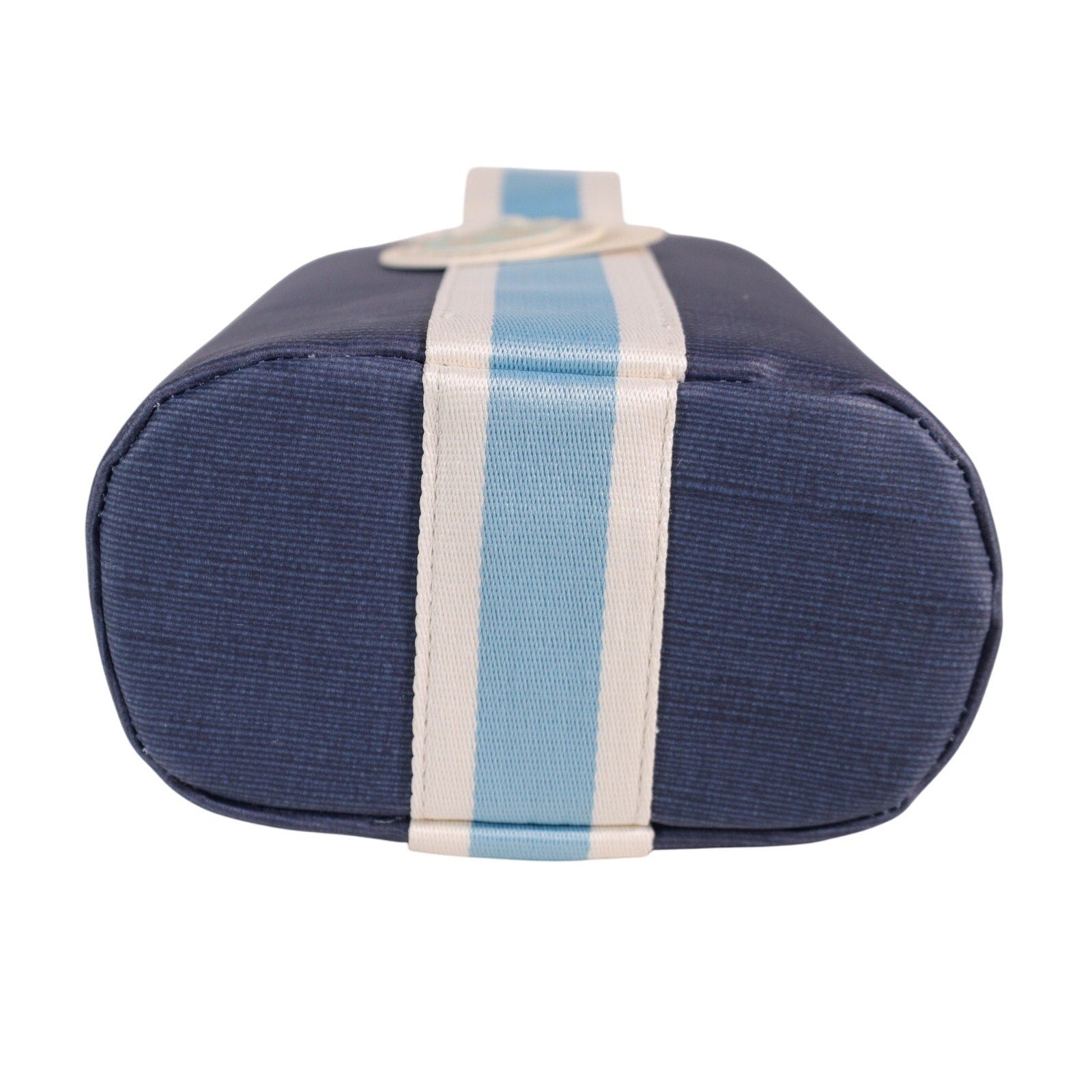 Sip in Style at your next gathering with this chic and durable wine tote from Spartina 449. Designed in classic navy with fresh white and light blue stripes, this tote carries your favorite bottle - or two - in style.